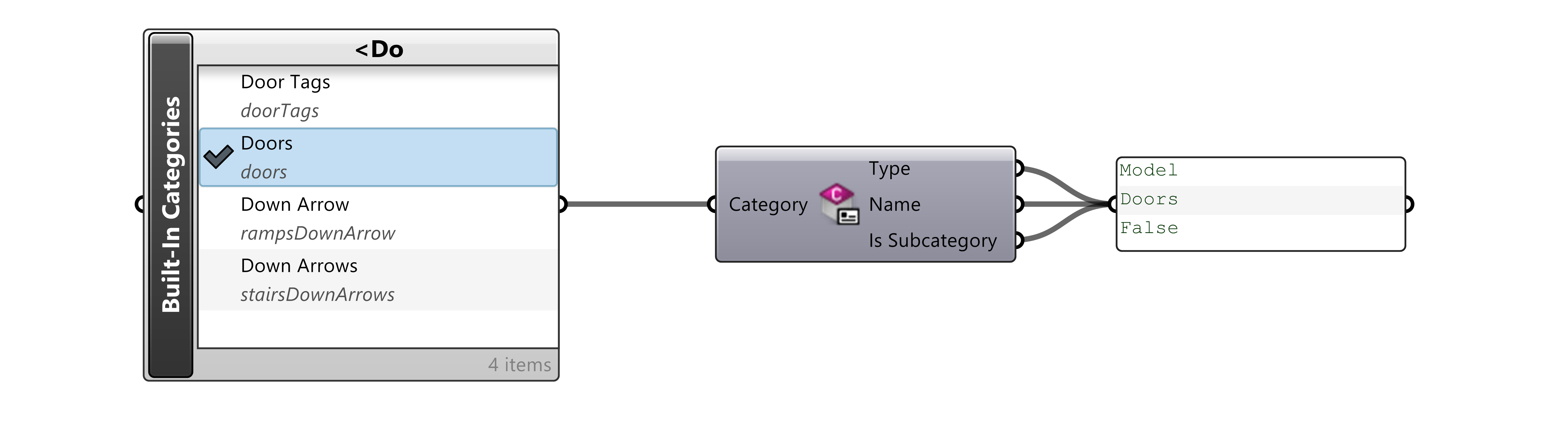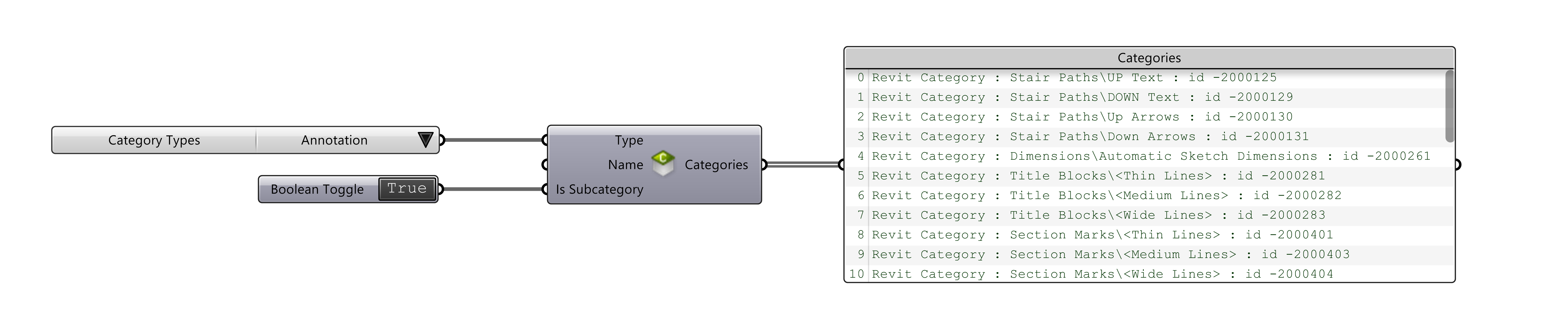 . This selector will list both main categories and built-in sub-categories that exist in every Revit file. Here this selected category is then run through the
