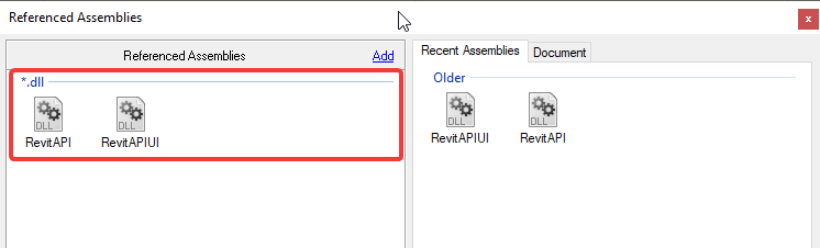Under current implementation, the C# component does not automatically bind the Revit API assemblies. This step is manual but will be automated in future releases |